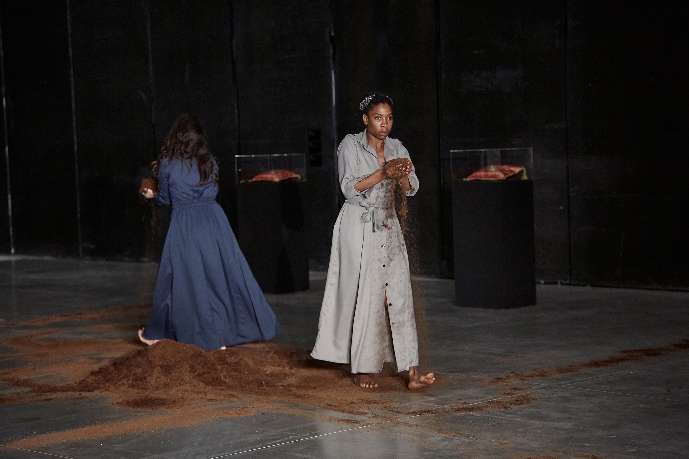 Durante la inauguración, el día 22 de noviembre, de 19 a 20.30 h, tuvo lugar una performance cuya dirección y coreografía corren a cargo de Jana Pacheco y Xus de la Cruz, música y sonido de Gastón Horischnik, y colaboración con las actrices Lara Fernán y Bea Mbula Mangue. Esta acción es un diálogo dramático visual con los espectadores para reflexionar sobre cómo los cuerpos se ven afectados por los procesos de explotación de los recursos naturales.