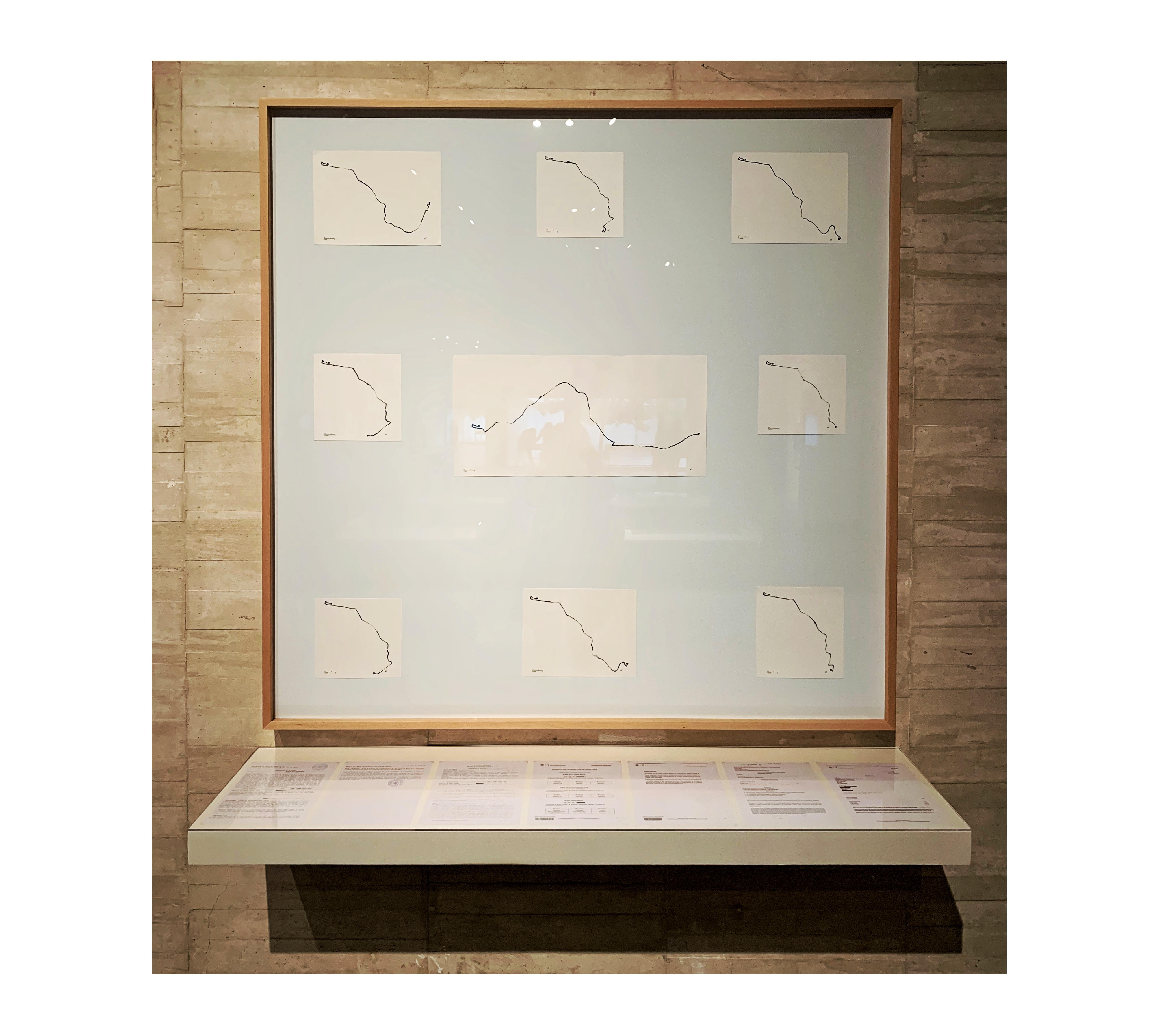 The artwork consists of a series of 1/1000 scale maps. Each map represents the linked trajectory between two points.